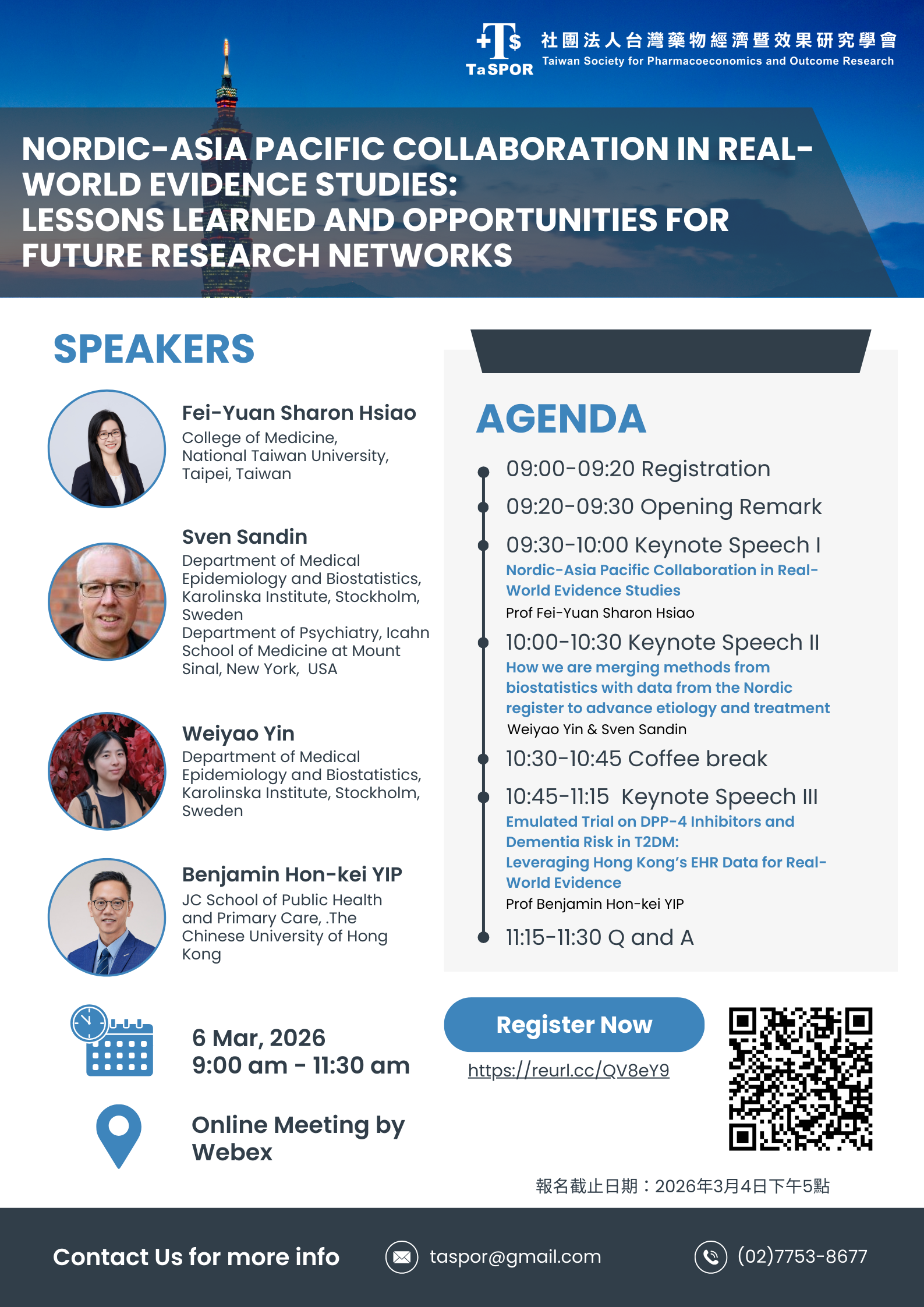 本會將於3月6日舉辦線上《Nordic-Asia Pacific Collaboration in Real-World Evidence Studies:Lessons Learned and Opportunities for Future Research Networks》交流活動,邀請相關專家進行討論,
